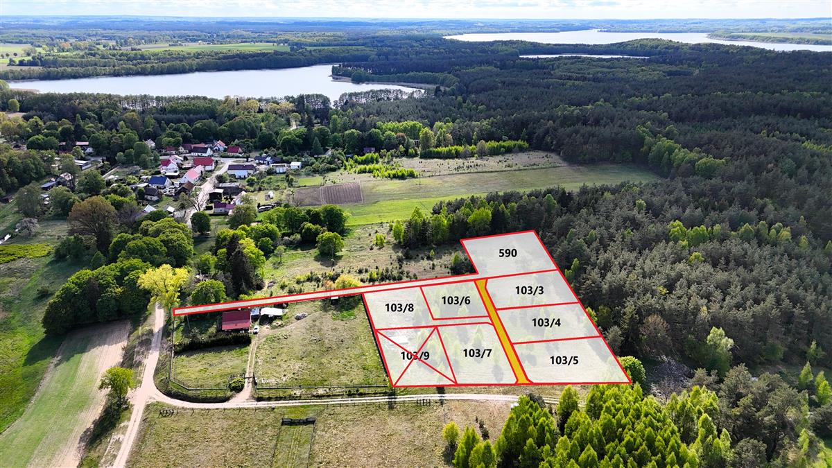 - działka nr 103/6, pow. 801 m2, wymiary ok. 30m x 26m, cena 49 900 zł;