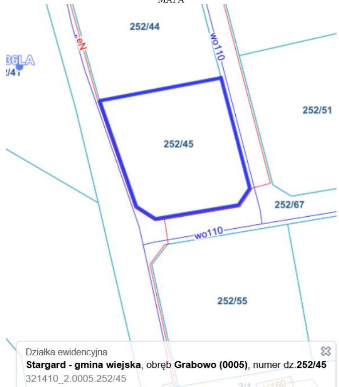 1.nieruchomość gruntową w Grabowie, j. ewid. Stargard – gmina, obr. ewid. nr 321410_2.0005, Grabowo, dz. ewid. nr 252/45, pow. 0,1000 ha, RIVb, RV – grunty orne wraz z posadowionym na niej garażem blaszanym, KW SZ1T/00130183/9,